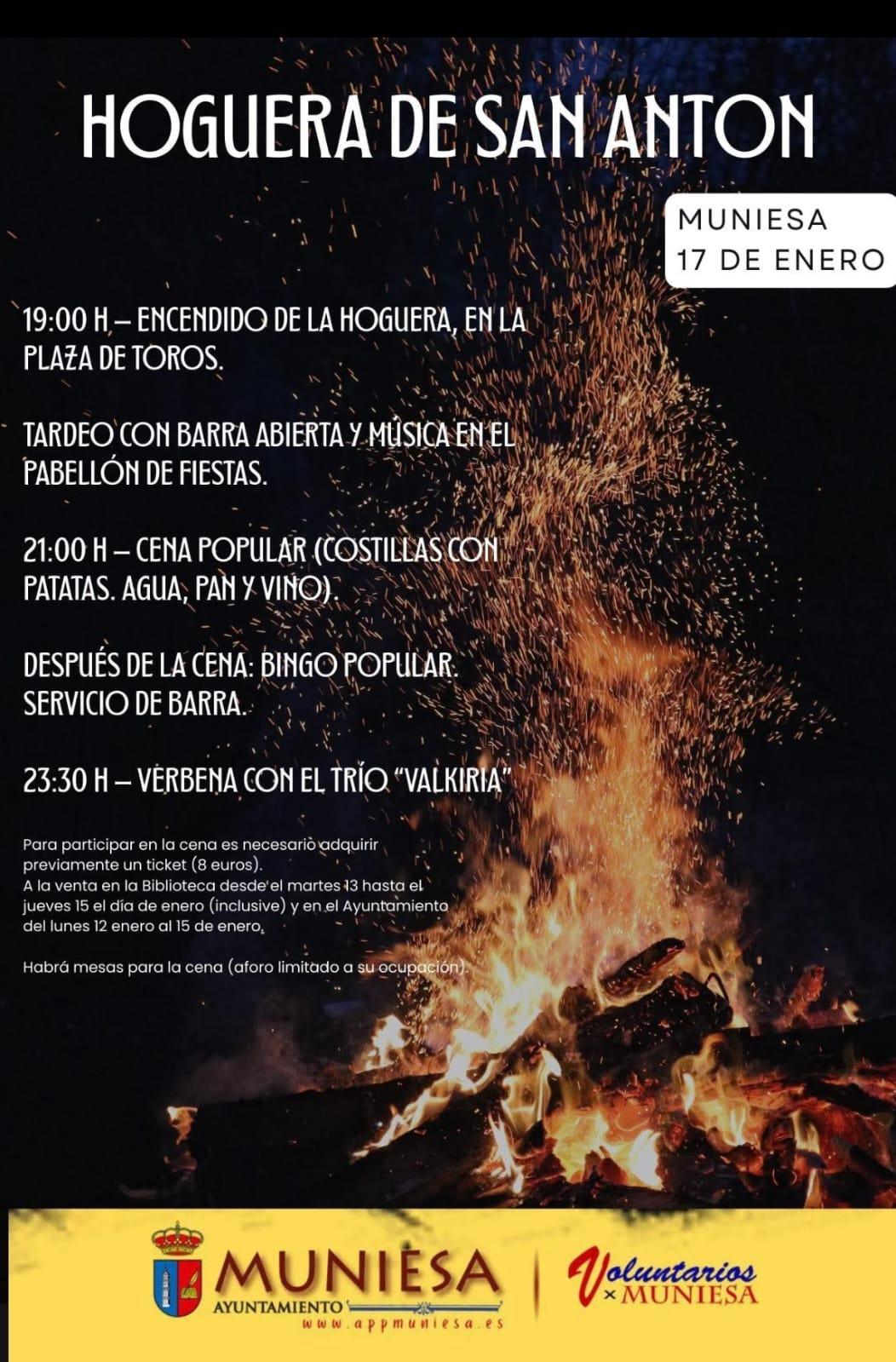 Sábado 17 de enero. Fiesta de la Hoguera, en el Pabellón de Fiestas, en honor de los copatronos de Muniesa San Fabián y San Sebastián.