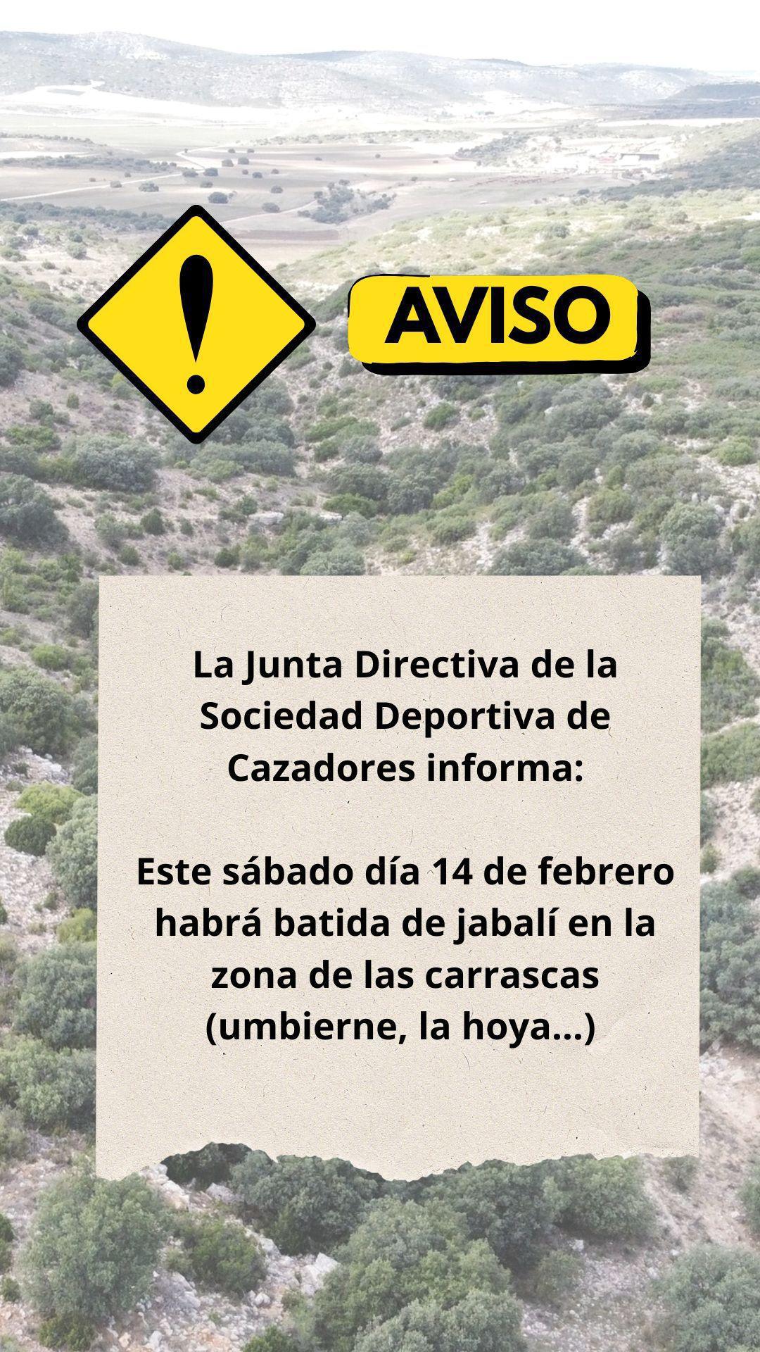 La Sociedad de cazadores "San Lorenzo" de Muniesa emite el siguiente aviso para conocimiento general: